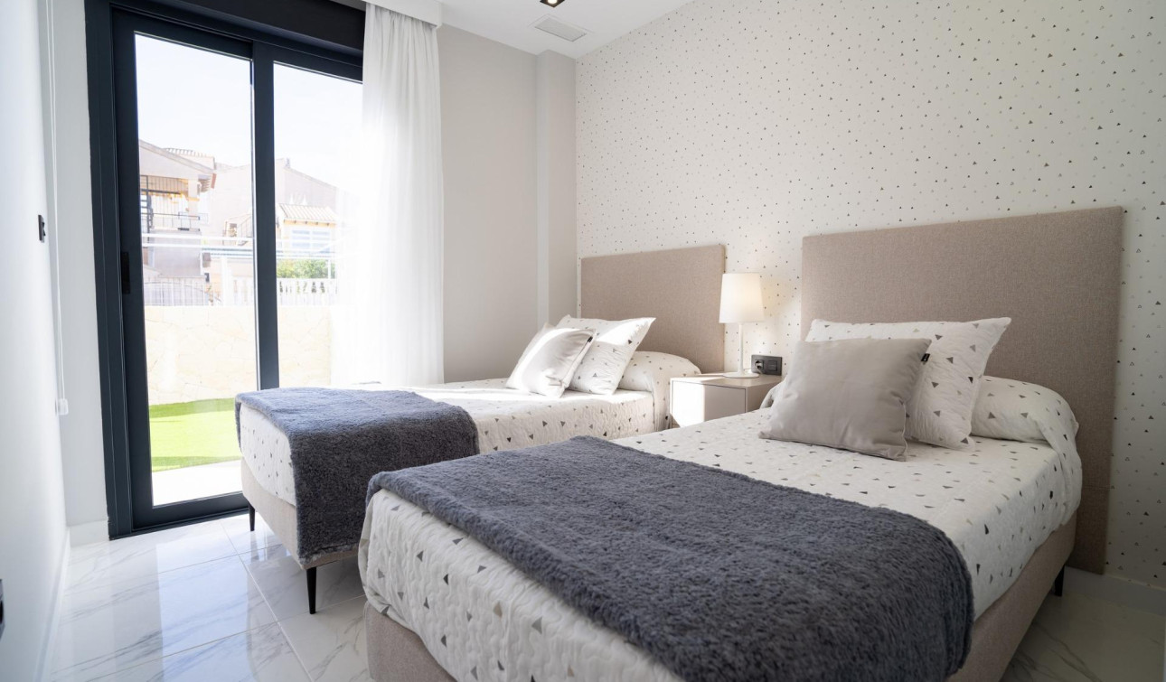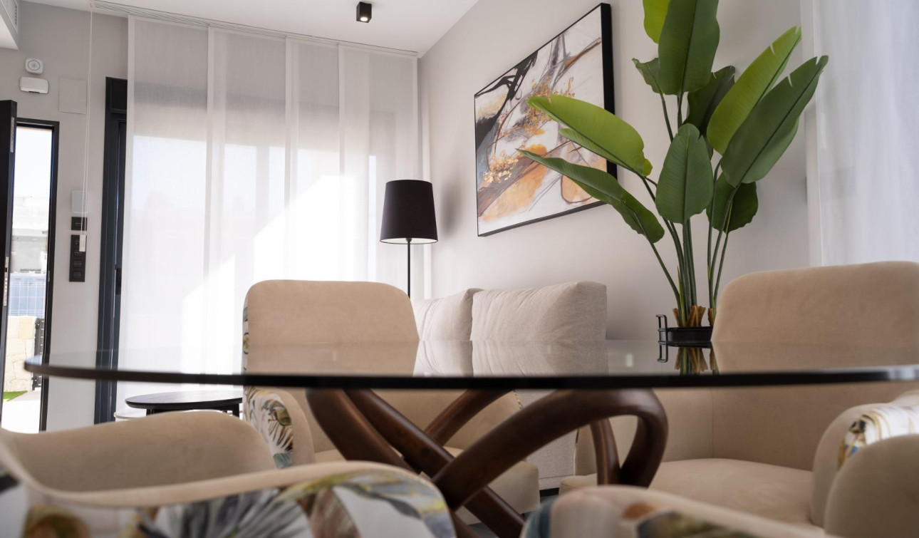 Bungalows de obra nueva en Pilar de la Horadada Viviendas modernas cerca de la playa Descubra este exclusivo complejo residencial de nueva construcción en Pilar de la Horadada, que ofrece bungalows a sólo 2 km de la playa. Diseñadas para ofrecer confort y estilo, estas viviendas son una excelente oportunidad para disfrutar de la vida en la Costa Blanca. Viviendas amplias y con estilo Esta promoción ofrece viviendas de 2 o 3 dormitorios con 2 baños y aparcamiento privado. Elija entre: Bungalows en planta baja con jardín privado. Bungalows en planta alta con solarium privado. Cada propiedad está construida con materiales de alta calidad y modernos acabados, incluyendo: Preinstalación de aire acondicionado por conductos. Carpintería exterior de aluminio, doble acristalamiento y persianas de aluminio inyectado. Puerta de entrada de seguridad para mayor tranquilidad. Sistema de aerotermia para producción eficiente de agua caliente. Armarios empotrados en dormitorios. Baños totalmente equipados con muebles y mamparas de ducha. Características exclusivas de la comunidad Este complejo residencial privado cuenta con una hermosa piscina comunitaria y jardines paisajísticos, creando un espacio ideal para la relajación. Situado a las afueras del centro de la ciudad, los residentes pueden ir andando a supermercados, restaurantes, bares, colegios y otros servicios esenciales. Ubicación privilegiada en Pilar de la Horadada Pilar de la Horadada es una encantadora ciudad española en la parte más meridional de la Costa Blanca. Ofrece una vibrante calle principal con numerosas tiendas, supermercados, restaurantes y plazas pintorescas. Las impresionantes playas de Torre de la Horadada y Mil Palmeras están a sólo 5 minutos, con arena fina y dorada y un pintoresco paseo marítimo. La ciudad también ofrece carriles bici y rutas de senderismo bien desarrolladas, además de una gran variedad de actividades deportivas. Cómodo acceso a destinos clave Campo de golf Lo Romero - 5 km (10 minutos en coche). Aeropuerto de Corvera (Murcia) - 40 km (40 minutos en coche). Aeropuerto de Alicante - 55 km (55 minutos en coche). Centros Comerciales (La Zenia Boulevard) - 15 km (15 minutos en coche). Puerto Deportivo Torre de la Horadada - 3 km (5 minutos en coche). Asegure hoy la casa de sus sueños No pierda esta fantástica oportunidad de poseer una vivienda a estrenar en una ubicación privilegiada. Póngase en contacto con nosotros hoy mismo para obtener más información y concertar una visita.