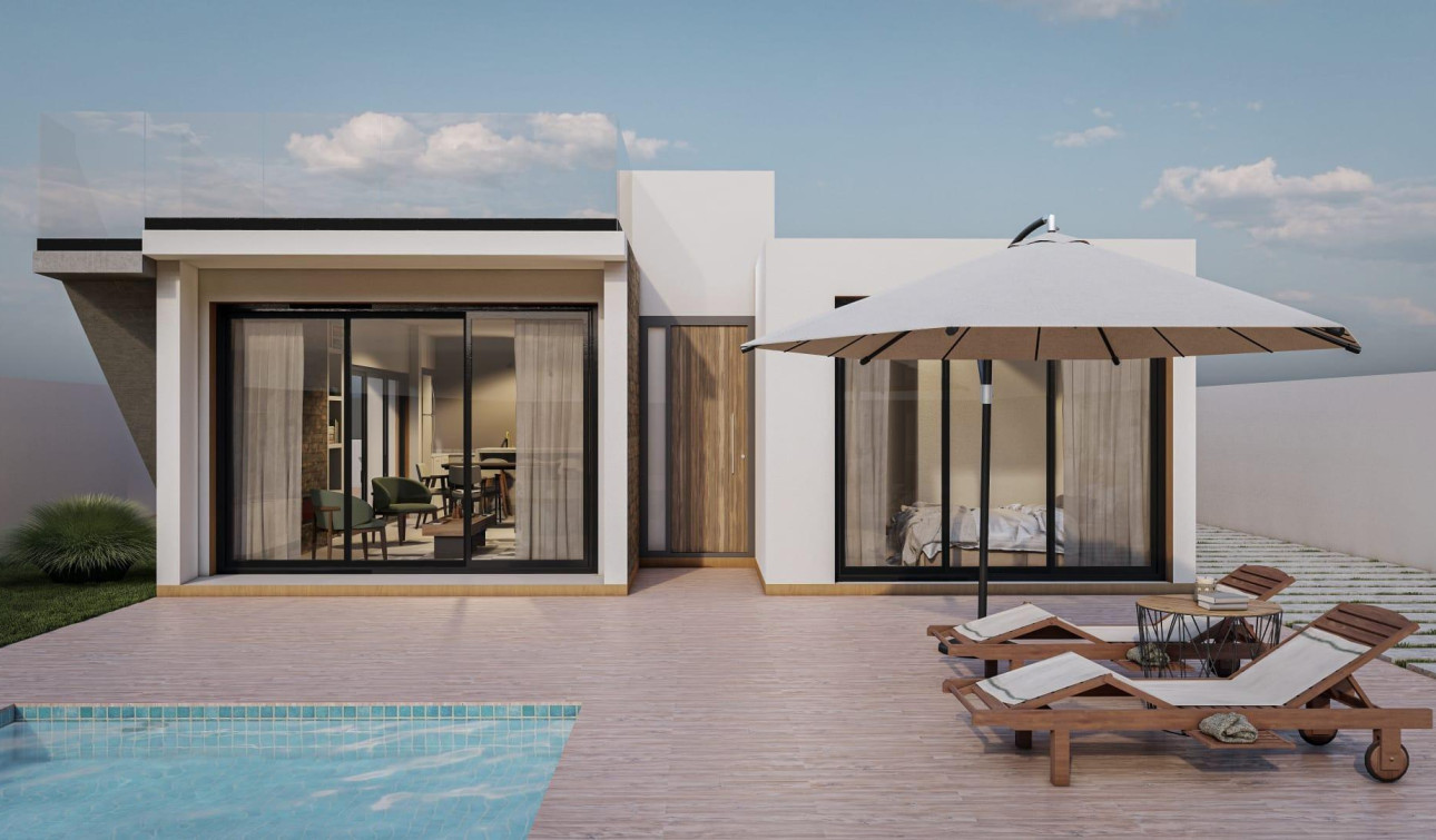 Villa de estilo ibicenco en un tranquilo pueblo español Exclusiva villa de nueva construcción en una amplia parcela Descubra esta impresionante villa de estilo ibicenco, una casa de nueva construcción de una sola planta situada en una amplia parcela de 750 m² en Las Casicas, una encantadora pedanía de Fortuna, Murcia. Diseñado para la privacidad y la relajación, esta propiedad cuenta con una piscina privada, solarium y una cocina totalmente equipada con electrodomésticos modernos y elegantes armarios. Un refugio tranquilo rodeado de naturaleza Las Casicas es una zona rural tranquila y bien cuidada, que ofrece un entorno sereno de montaña con exuberante vegetación y fauna local. A pesar de su ambiente tranquilo, no está aislada, ya que forma parte de una pequeña comunidad habitada que conserva su encanto tradicional español. La cercana localidad de Fortuna, a sólo 10 minutos en coche, ofrece todos los servicios esenciales, como supermercados, tiendas, colegios y centros sanitarios. Además, la ciudad de Murcia está a sólo 30 minutos de distancia, ofreciendo una vibrante escena cultural, centros comerciales, restaurantes y opciones de entretenimiento. Ubicación privilegiada con fácil acceso a las principales atracciones Esta villa está idealmente situada para disfrutar tanto de la tranquilidad rural como de la comodidad urbana: Fortuna centro de la ciudad - 10 km (10 minutos) Murcia ciudad - 45 km (30 minutos) Balneario de Leana - A un corto trayecto en coche, rodeado de hoteles y restaurantes Aeropuerto de Alicante - 80 km (50 minutos) Playas de la Costa Blanca - Aprox. 1 hora en coche Perfecta para relajarse y vivir al aire libre Esta elegante villa está diseñada para ofrecer un cómodo estilo de vida mediterráneo, con una piscina privada y un espacioso solarium ideal para disfrutar de los más de 320 días de sol al año de Murcia. Su entorno natural y su ambiente tranquilo la convierten en una excelente elección para aquellos que buscan una casa de vacaciones, una propiedad de inversión o una residencia para todo el año. ¡La casa de sus sueños le espera! Disfrute del equilibrio perfecto entre naturaleza y confort moderno en esta exclusiva villa en Las Casicas, Fortuna. Póngase en contacto con nosotros hoy mismo para más información o para concertar una visita.