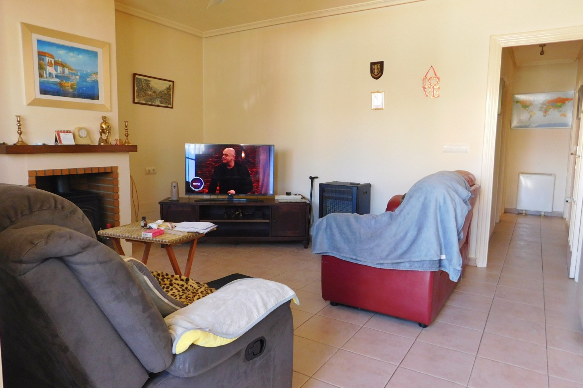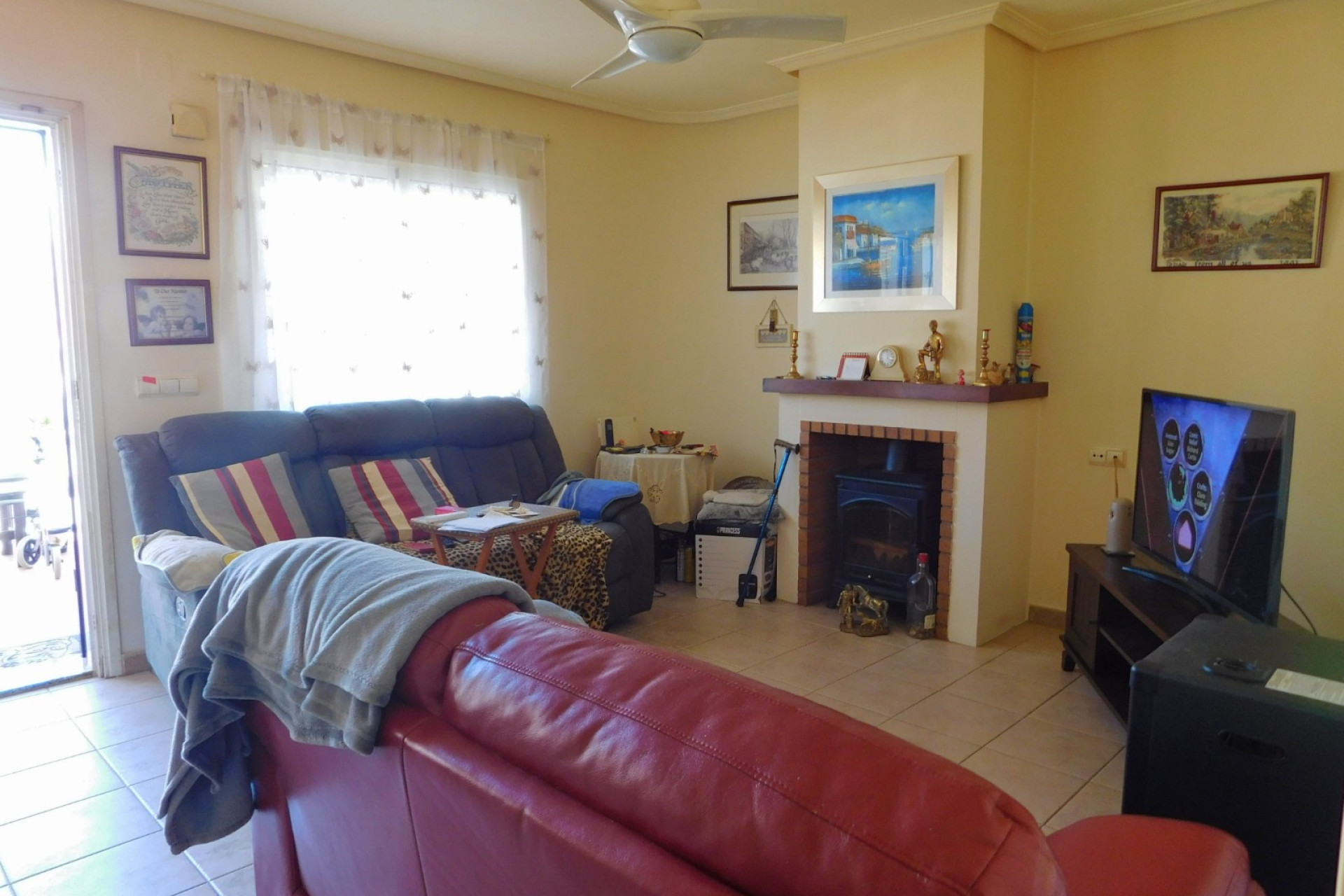 Parcialmente amueblado con puertas de seguridad, chimenea de leña en el salón con aire acondicionado en todas partes.