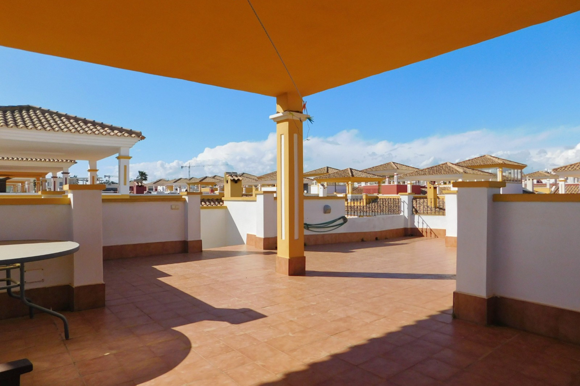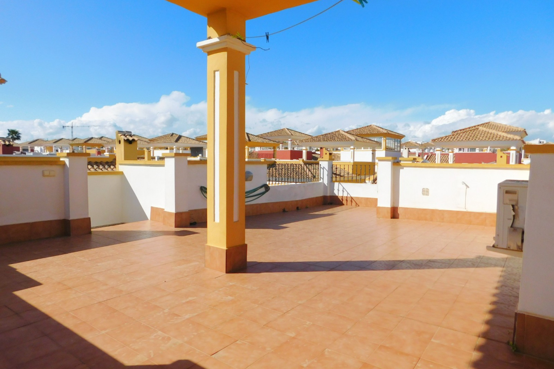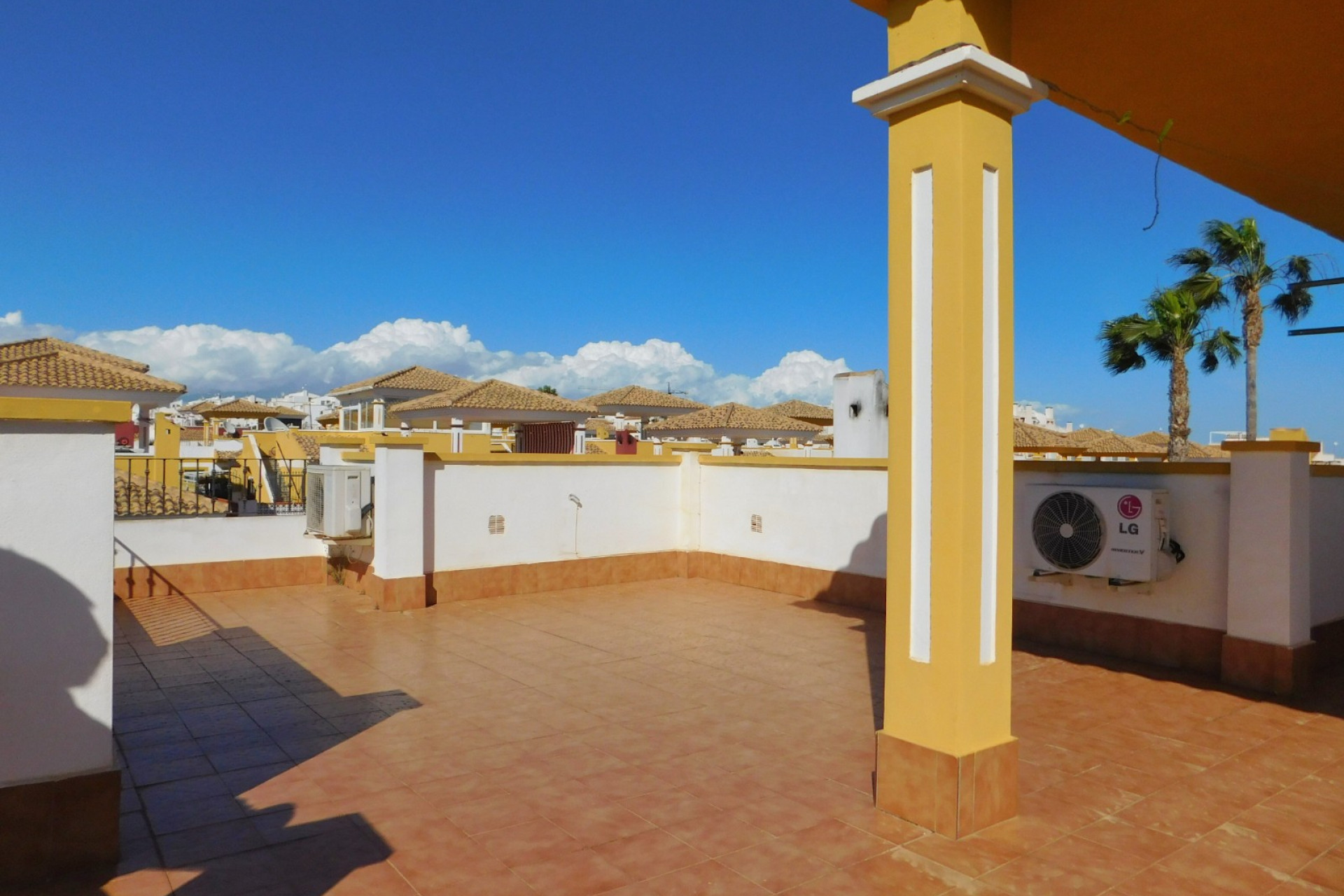 Ubicada en una comunidad con una magnífica piscina y jardines bien cuidados, esta villa cuenta con su propio solárium en la azotea y un jardín envolvente. Fácil de mantener y dispone de aparcamiento privado en la parte delantera.