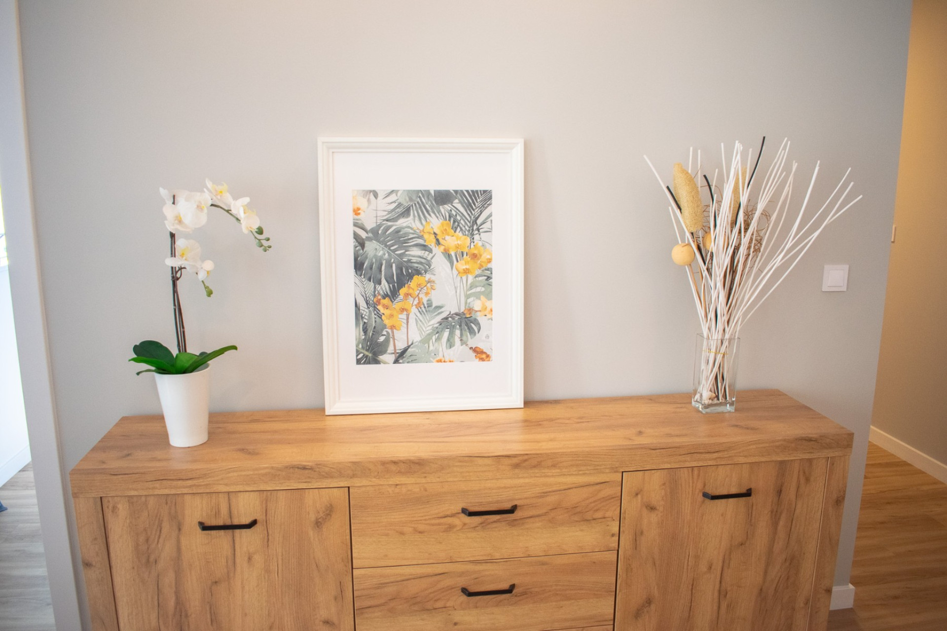 La maison est entièrement meublée dans un style contemporain , avec notamment un revêtement de sol en vinyle résistant , un éclairage neuf, des murs élégants et du mobilier moderne . Tout cela est inclus dans le prix .