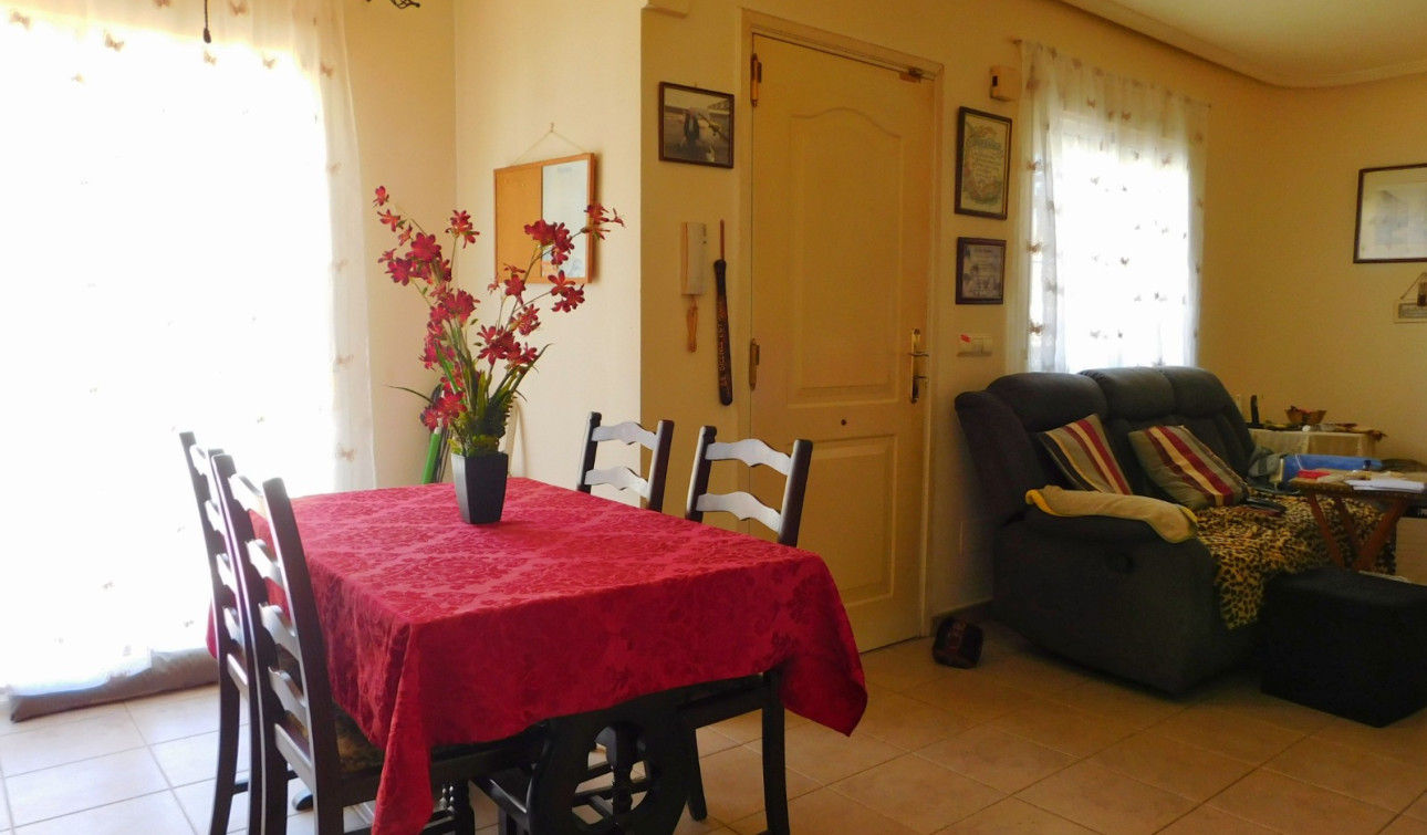 Een korte beschrijving van het pand: u komt binnen via het overdekte terras aan de voorzijde in de grote woonkamer en aparte eetkamer. Vanaf hier heeft u de ruime volledig uitgeruste keuken waar u toegang heeft tot de tuin, bijkeuken en dakterras, die een aantal van de meest verbazingwekkende uitzichten bieden op de zoutmeren van Torrevieja. De 3 slaapkamers met tweepersoonsbedden zijn voorzien van inbouwkasten met 2 badkamers, waarvan er één de en-suite is van de hoofdslaapkamer.