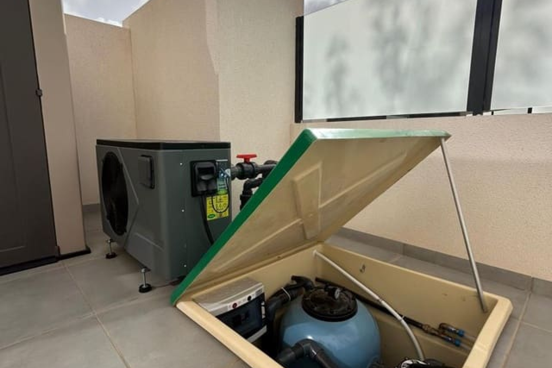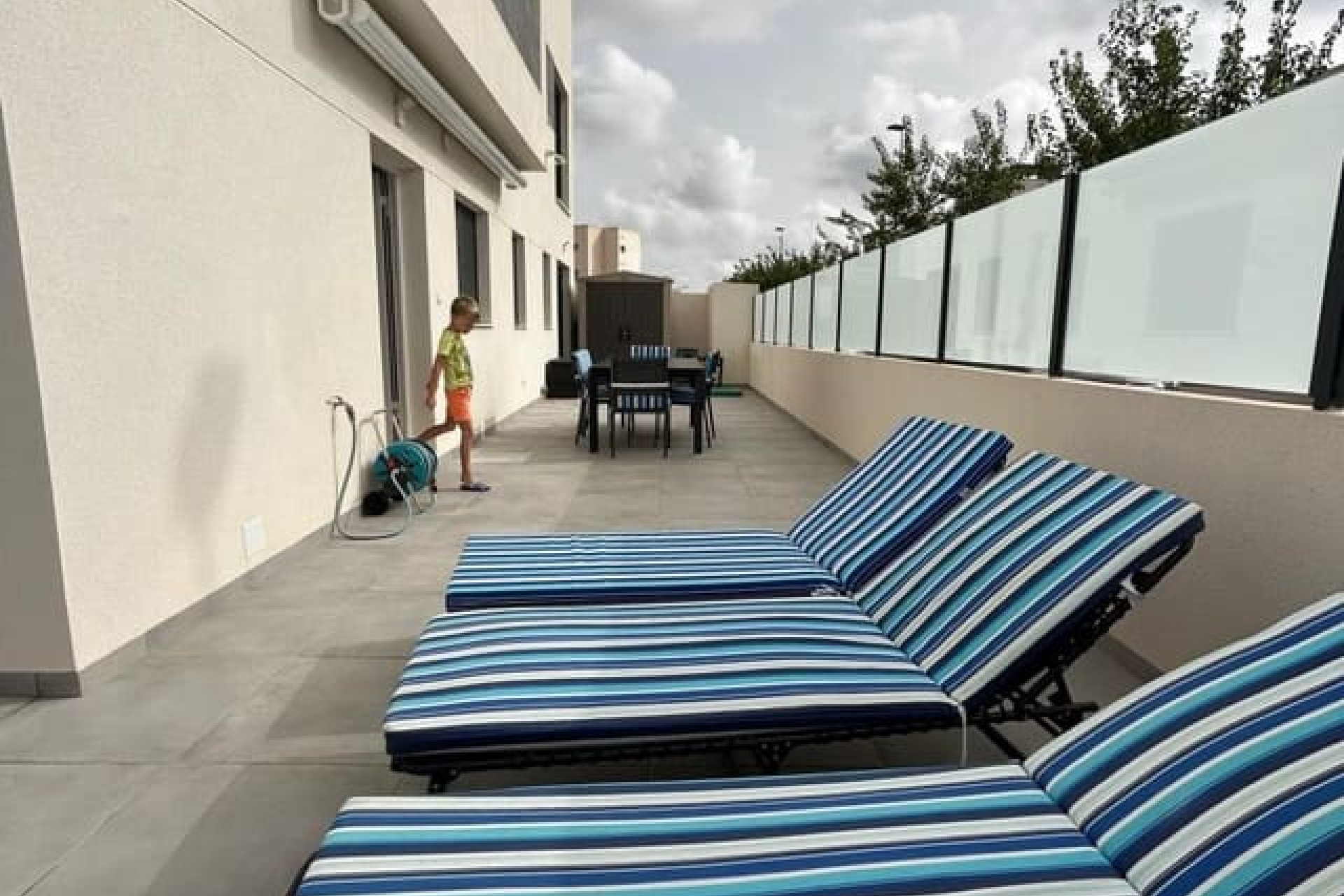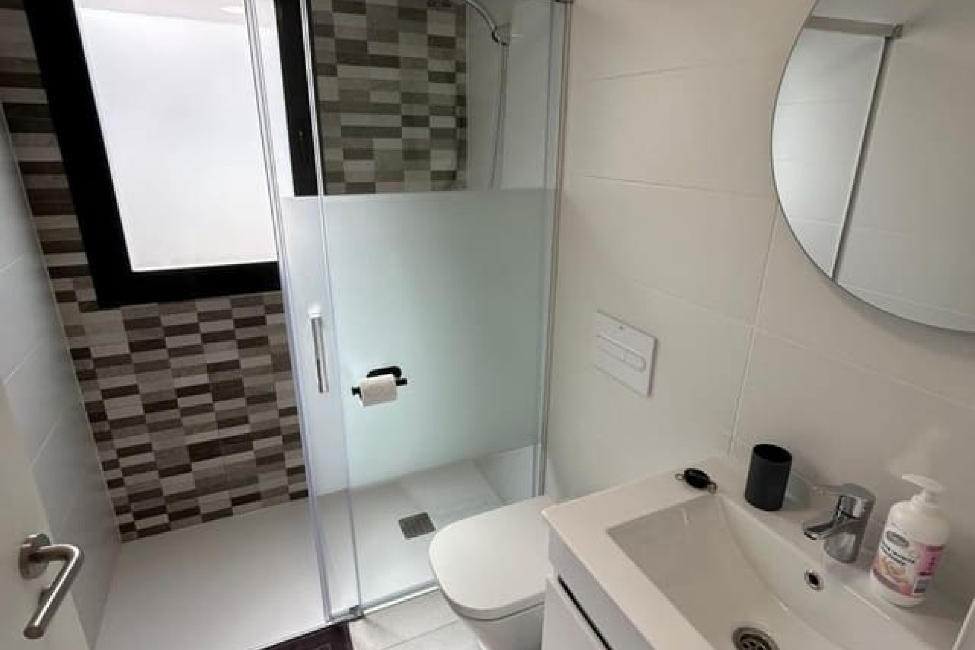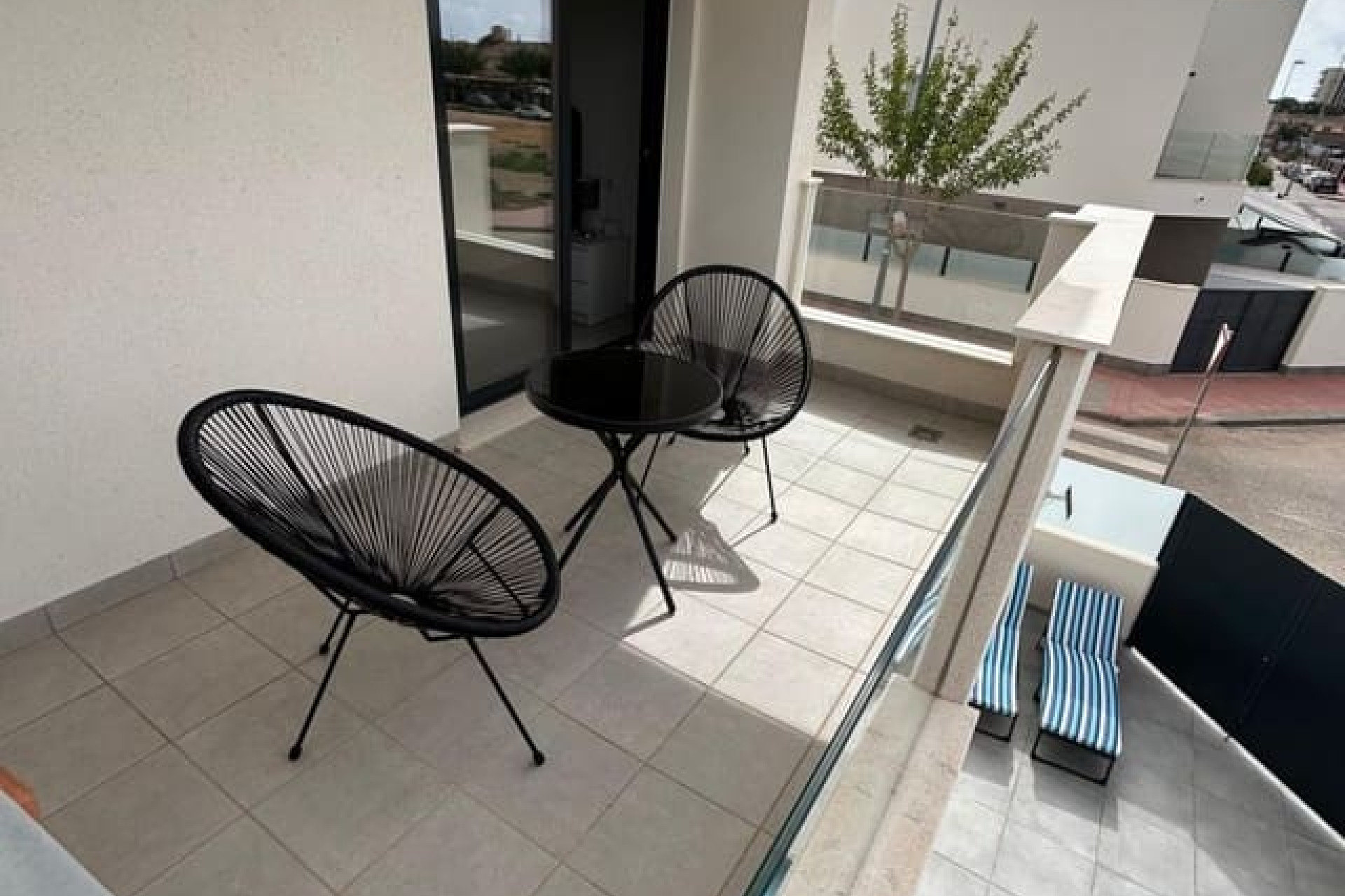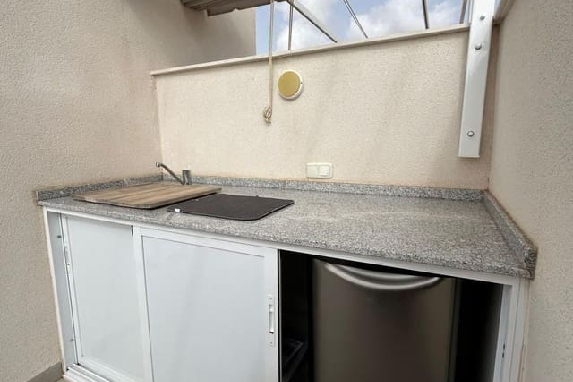 Halfvrijstaande villa met 3 slaapkamers en 2 badkamers, gelegen op het zuidoosten, met privézwembad en eigen solarium in Santiago de la Ribera. Ruim perceel met een afgesloten oprit die leidt naar een groot terras aan de voorzijde. Het grote zwembad bevindt zich aan de voorzijde van de woning en biedt voldoende ruimte om te dineren en te zonnebaden. De woning beschikt over een ruime woonkamer met uitzicht op het zwembad en een moderne, open keuken met alle voorzieningen. Achter de keuken bevindt zich een tweepersoonsslaapkamer met inbouwkasten en een deur naar het zijterras. Op de begane grond is tevens een moderne doucheruimte. Op de eerste verdieping bevinden zich twee tweepersoonsslaapkamers met inbouwkasten. De slaapkamer aan de voorzijde van de woning heeft toegang tot een terras. Ook op deze eerste verdieping bevindt zich een moderne doucheruimte. Een trap vanaf de eerste verdieping leidt naar uw eigen privé-dakterras met buitenkeuken. Nog een fantastische buitenruimte. Deze woning is slechts twee jaar oud en wordt volledig gemeubileerd verkocht. Het strand is op loopafstand en het winkelcentrum Dos Mares en het winkelpark Pinatar liggen op korte rijafstand. De luchthaven van Murcia ligt op ongeveer 30 minuten rijden en Alicante op ongeveer een uur rijden. Er zijn ook een aantal bars en cafés in de buurt van de accommodatie. Santiago de la Ribera is een prachtige stad aan de oevers van de Mar Menor. Het is de kustplaats van de stad San Javier en begon als een eenvoudig vissersdorp. Het is nu een populaire vakantiebestemming die niet alleen Spanjaarden, maar ook toeristen uit heel Europa aantrekt. Santiago heeft een moderne uitstraling, maar behoudt nog steeds zijn 'vissersdorp'-sfeer. Het heeft een prachtige boulevard met majestueuze palmbomen en 2 kilometer aan mooie zandstranden. Vanuit hier kunt u een boottocht maken over het kalme water van de Mar Menor naar de La Manga Strip aan de overkant. Het belangrijkste winkelgebied bevindt zich in de stad San Javier, maar er zijn ook een aantal winkels in de smalle straatjes om rond te snuffelen; probeer het eens op woensdagochtend wanneer er een grote straatmarkt is.