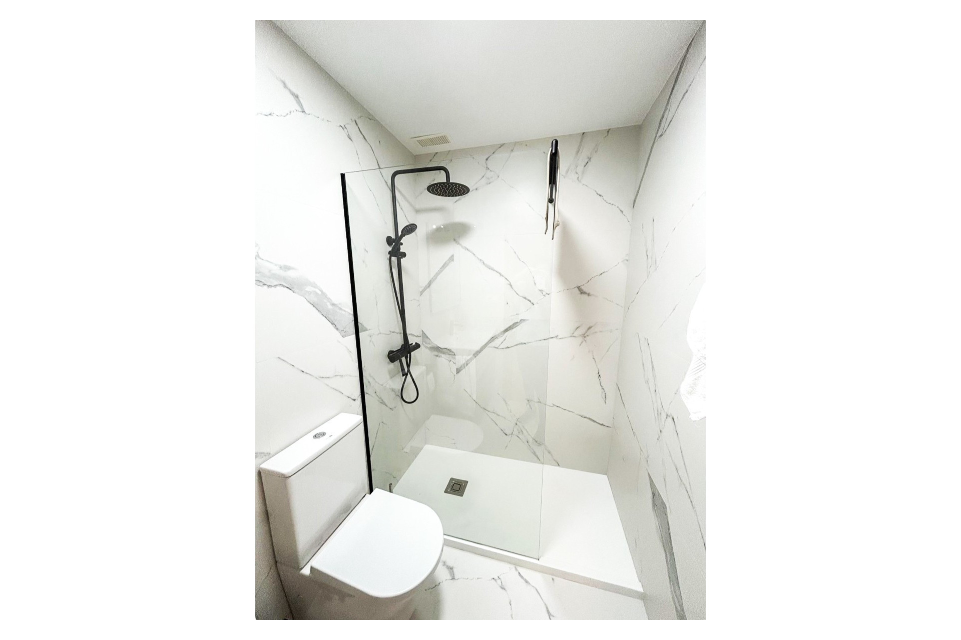Met een totale oppervlakte van 110 m² combineert deze woning hoogwaardige materialen met een ideale indeling: De begane grond beschikt over een grote woon-eetkamer met een volledig uitgeruste open keuken , een aparte galerij, een berging en een complete badkamer . Op de tweede verdieping bevinden zich twee slaapkamers met directe toegang tot privéterrassen , ideaal om van de zeebries te genieten. Op de derde verdieping strekt zich een indrukwekkend solariumterras uit over de gehele verdieping en is voorzien van kunstgras en ontspanningsplekken die uitnodigen om te vertoeven.