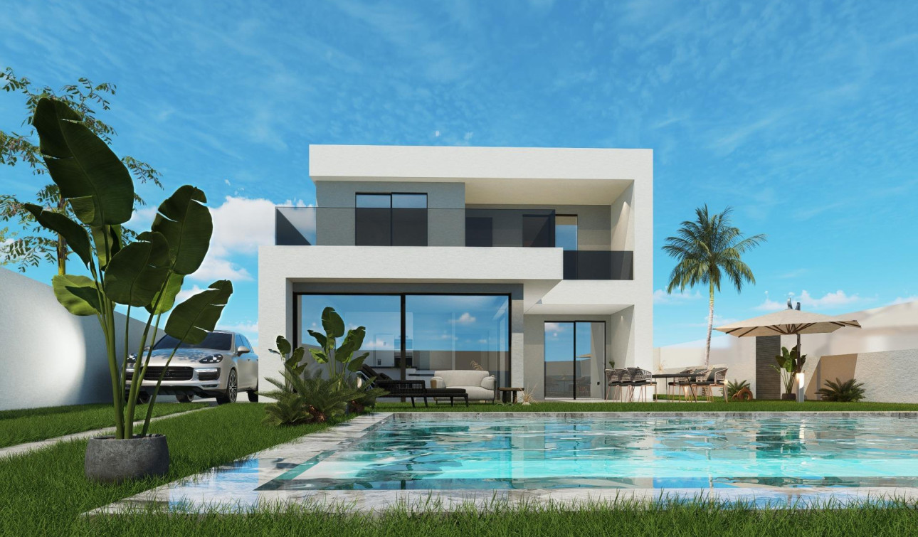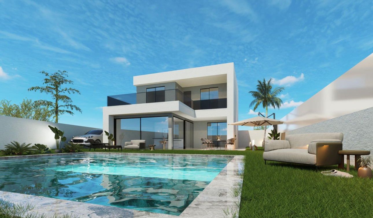 NEW BUILD VILLA IN SAN PEDRO DEL PINATAR New Build beautiful two level villa have been thoughtfully designed to provide the perfect individual private contemporary living space, featuring double full glass sliding doors that open directly on to a large terrace with private swimming pool enclosed gardens with off road parking. “SUN ALL DAY” with first floor terraced area to enjoy the sun all day long … Located in a centralised, established residential area just 10 minutes walk to the beaches in San Pedro del Pinatar. This south facing plot is located in a residential area just 25 minutes from the city of Cartagena and 30 minutes from the new Covera (Murcia International Airport). Perfect for living … This signature villa offers an oversized generous feel with 3 bedrooms, 3 bathrooms, guestb toilet, storage laundry area, open plan lounge and dining area, covered terrace, open terraces from the master bedrooms on the first floor, super large private swimming pool (38m2) to the front with off road parking and garden area. San Pedro del Pinatar's privileged location on the Mar Menor and Mediterranean coastline it attracts those with an interest in sailing and watersports, providing marina mooring and sailing clubs, while the beaches and natural mud baths attract those seeking safe sun, sea and sand. San Pedro del Pinatar has an established community and offers an excellent range of activities, including covered swimming pool and sports facilities, as well as a year round programme of social activities by the pleasant winter weather. The benefits of the mud baths, typical of the region, or the calm waters of the Mar Menor, have favoured the growth of Lo Pagán, which currently has all kind of amenities. In addition, it has an excellent location, just 5 minutes from the Commercial Centre Dos Mares. Murcia/Corvera airport is 30 minutes away and Alicante airport is an hour drive away.