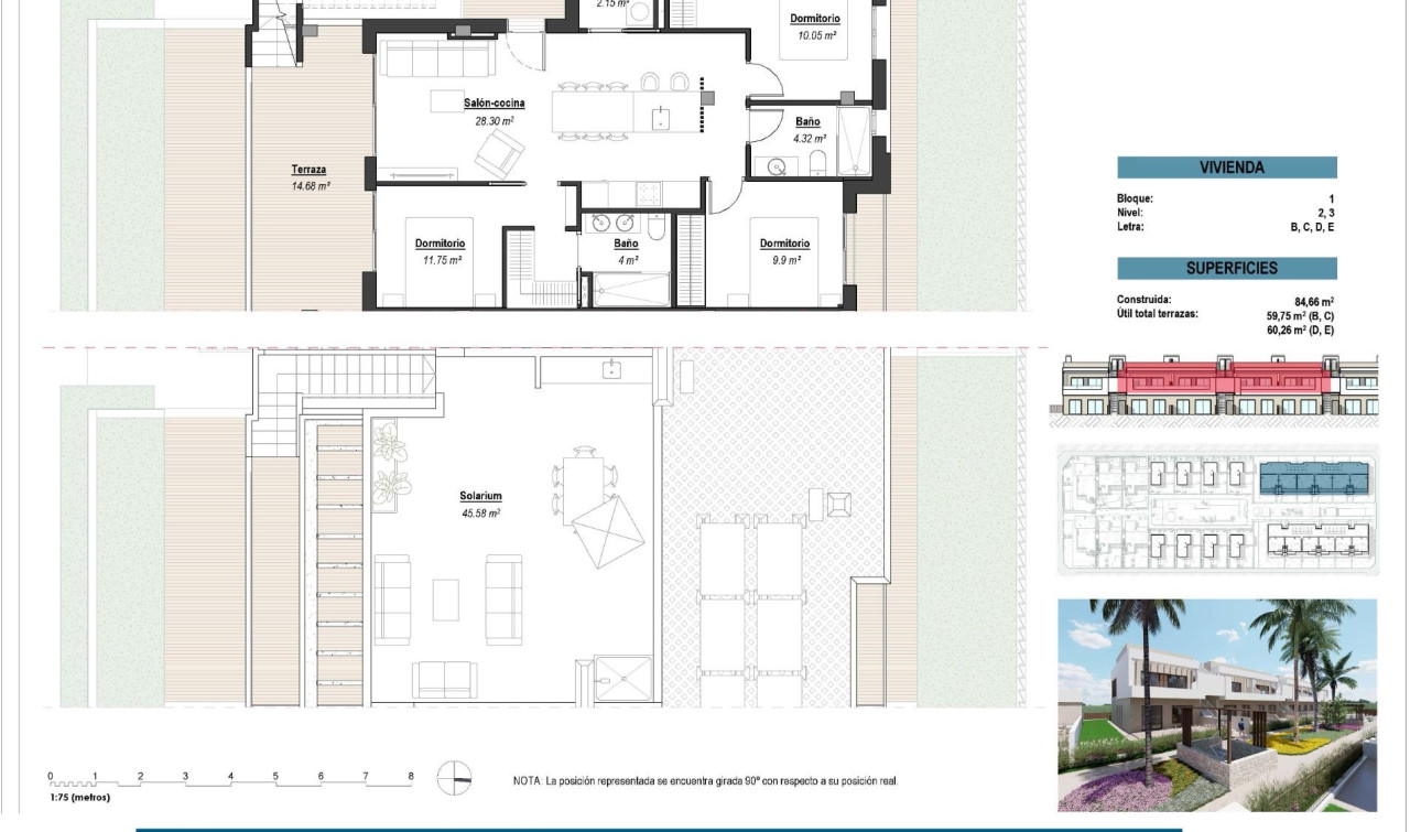 Exclusive Villas and Bungalows on the Costa Cálida - Design, Comfort and Privileged Location A Project that Fuses Privacy and Community Living Discover a new residential concept on the Costa Cálida, designed for those seeking the perfect combination of privacy, comfort and social life. This exclusive complex offers detached villas and bungalows, with access to spacious communal areas and a communal swimming pool, providing the best of both worlds: the tranquillity of a private home and the comfort of shared spaces to enjoy with friends, family and neighbours. All homes include a parking space and storage room in the basement, guaranteeing security and convenience for residents. Modern Design and Personalisation Options This development offers a wide range of homes to suit different needs and lifestyles: Ground floor bungalows with private gardens up to 122 m². Top floor bungalows with large terraces and private solarium. One or two-storey detached villas, with plots ranging from 201 to 356 m² and different layout and finishing options. Each home is designed to maximise natural light, creating spacious and welcoming spaces. The master suite has been carefully conceived to guarantee privacy and comfort, completely separating the sleeping area from the bathroom, avoiding interruptions of light or noise during the night. Quality and Sustainability in Every Detail These homes have been built with high quality materials and equipped with sustainable technologies, such as solar panels and aerothermics, to improve energy efficiency. Outstanding features: Motorised blinds in bedrooms. Armoured front door for greater security. Pre-installation of ducted air conditioning. Modern bathrooms with tempered glass partitions and suspended furniture with LED mirror. Strategic Location in Los Alcázares Situated just a few metres from the prestigious Serena Golf course and 1 km from the beaches of the Mar Menor, this complex enjoys a privileged location in Los Alcázares, one of the most promising areas of the Costa Cálida. In addition, its easy access to the AP-7 motorway allows quick connection to other destinations in the region and facilitates access to essential services such as supermarkets, sports centres, schools and pharmacies. Distances to Points of Interest La Serena Golf - 1 km (2 minutes by car). Mar Menor Beach - 1 km (2 minutes by car or 10 minutes walk). Murcia Airport - 35 km (30 minutes by car). Cartagena Port - 22 km (20 minutes by car). Local shopping centre - 3 km (5 minutes by car). A Mediterranean Lifestyle with High Profitability This project not only represents an excellent option to enjoy the Mediterranean lifestyle, but it is also a safe investment in a growing area. Don't miss out on this unique opportunity. Contact us today for more information and to reserve your ideal home on the Costa Cálida.