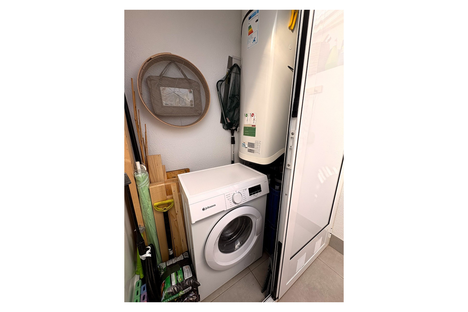 The property features a private swimming pool , a parking space within the plot , a covered terrace , a low-maintenance garden , a laundry room , and a storage room or pantry .The main floor comprises a fully equipped open-plan kitchen that connects to the living and dining area, creating a functional and bright space. The property has three bedrooms and two full bathrooms , thoughtfully distributed for comfort and efficiency.